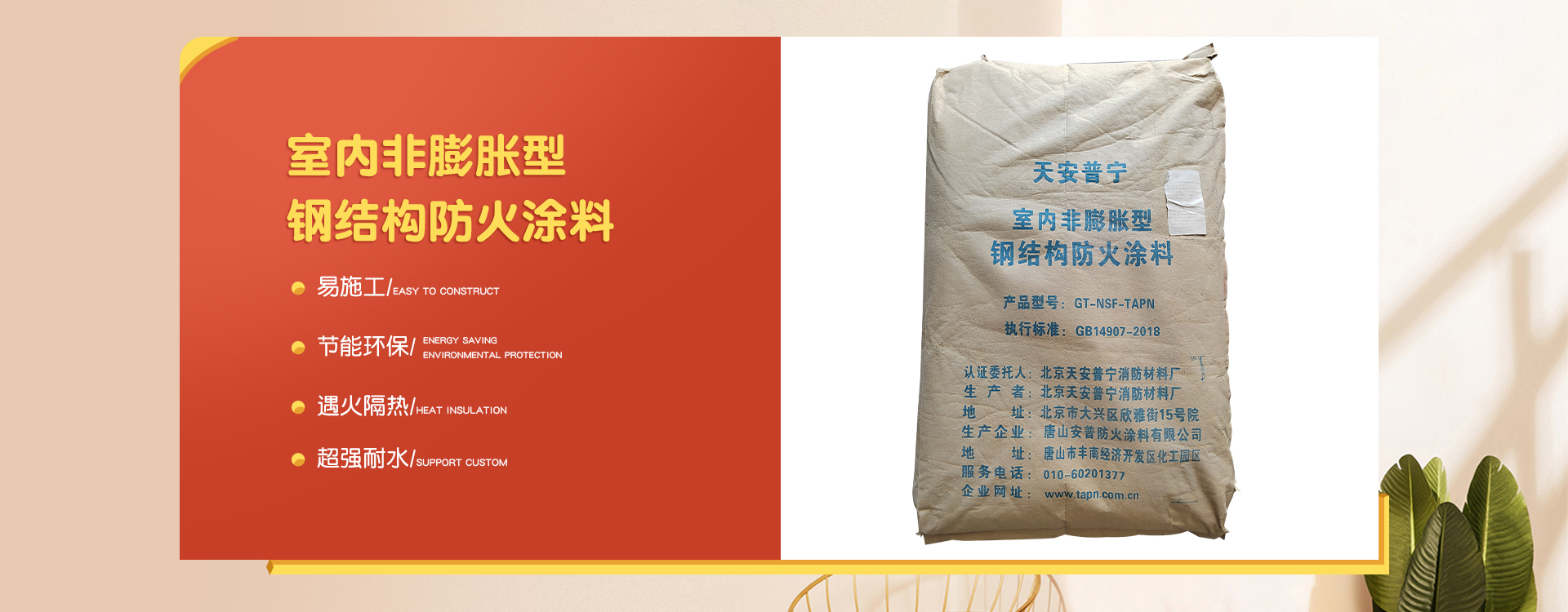 北京天安普寧消防材料廠是一家從事防火涂料二十多年生產企業,企業集研制開發(fā)、生產銷售及各類防火涂料施工為一體。 企業員工總數100人,其中管理人員20人,科研人員10人,銷售50人,其他員工十多人。企業生產用地面積2000平方米左右,辦公用地面積1000平方米。擁有先進的生產設備20多臺,年生產量10000余噸。  企業擁有一支高學歷、資歷深的研發(fā)隊伍,以科學的管理,先進成套的生產流水線設備及完善的產品質量檢驗措施,開發(fā)出TAPN系列防火涂料產品,可以滿足于各類建筑工程中不同基材、不同技術要求的防火保護,天安普寧系列防火涂料全部經過《國家消防及阻燃產品質量監(jiān)督檢驗中心》檢驗,理化性能合格,防火性能高,通過《應急管理部消防產品合格評定中心》認證并獲得《消防身份信息標識》。 企業結合多年的工程施工實踐經驗,培養(yǎng)了一支專業有素、經驗豐富、高質量、效率高的防火涂料施工隊伍,可承攬各類高層、多層、大跨度廠房及網架鋼結構防火涂料噴涂施工服務。 企業始終為用戶全心全意服務,不斷滿足各建設單位的要求,共同為我國的建筑消防事業作出更大的貢獻,衷心感謝新老客戶的支持,全體員工熱情歡迎廣大用戶的光臨惠顧。